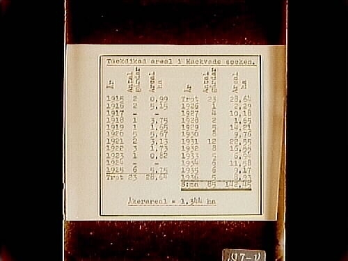 Tabell: Täckdikad areal i Hackvads socken, åren 1915-1936.