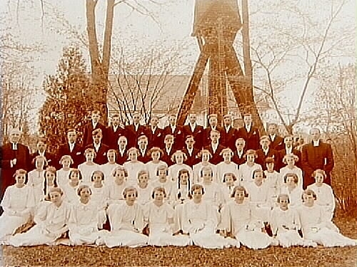 Konfirmander, 33 flickor, 21 pojkar, pastor Lindberg och prosten Lindén.