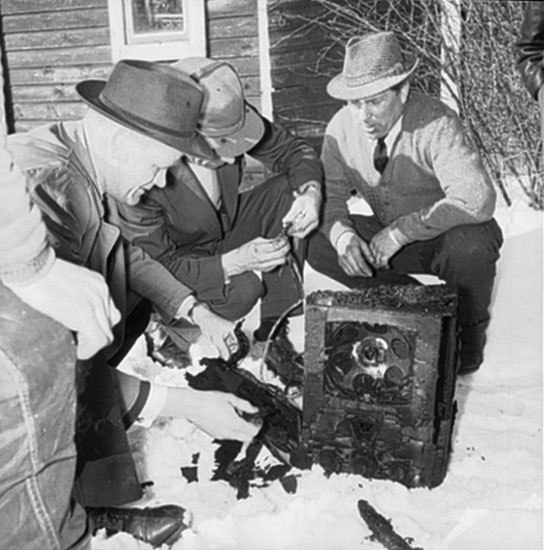 Branden på We-Ges affär i Ställdalen, brandkår, tre män.