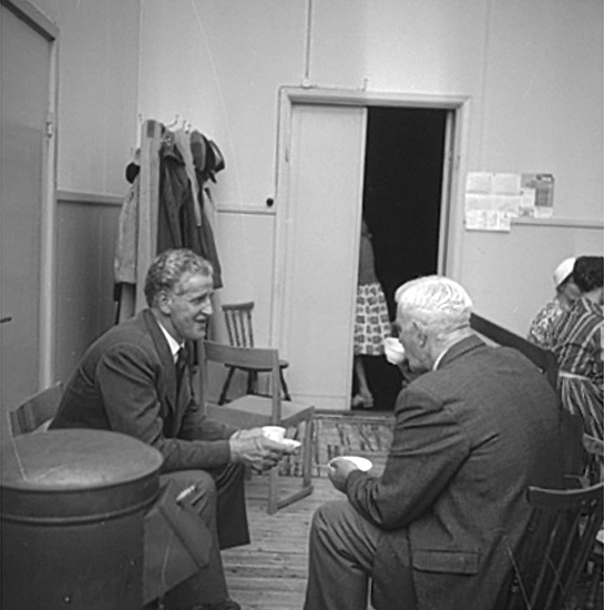 "Lördagskväll" vid Lillängsgården, kaffedrickande.