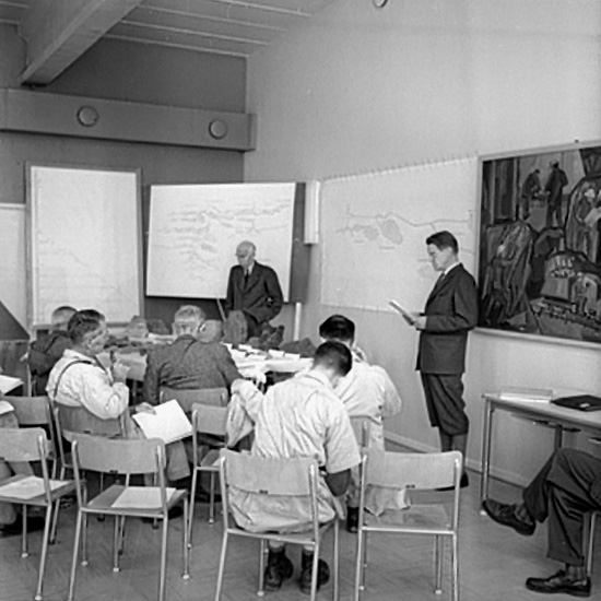 Geologer från hela världen samlade i Mossgruvan, interiör, grupp.