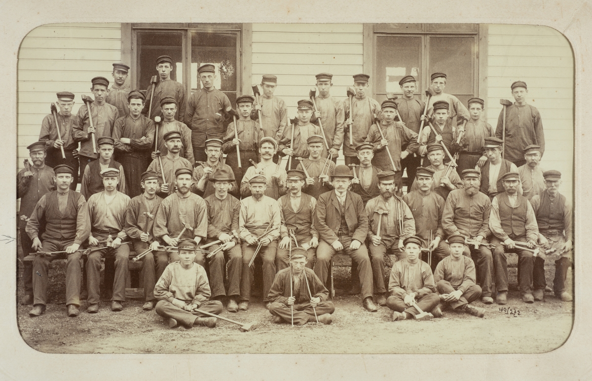 Smeder, medhjälpare, utanför snickarverkstaden vid Bofors, omkring 1910.