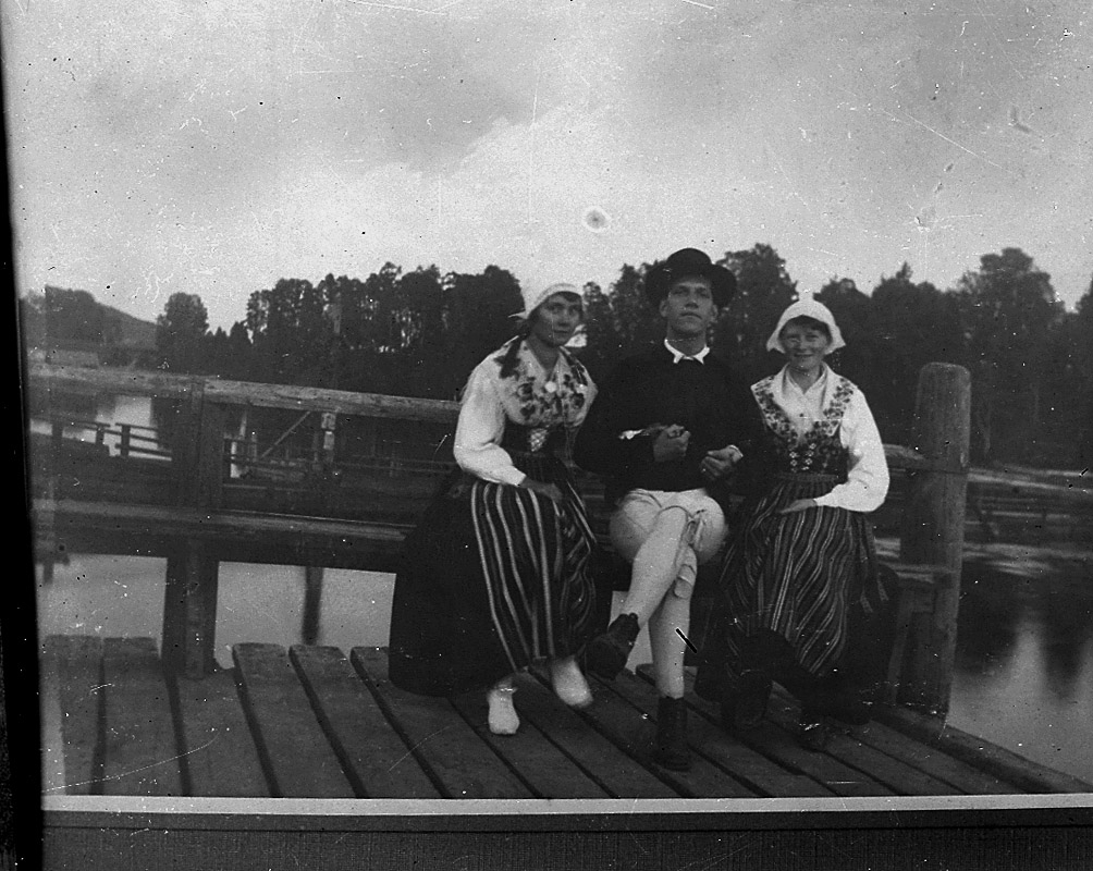 En man och två kvinnor i folkdräkt.