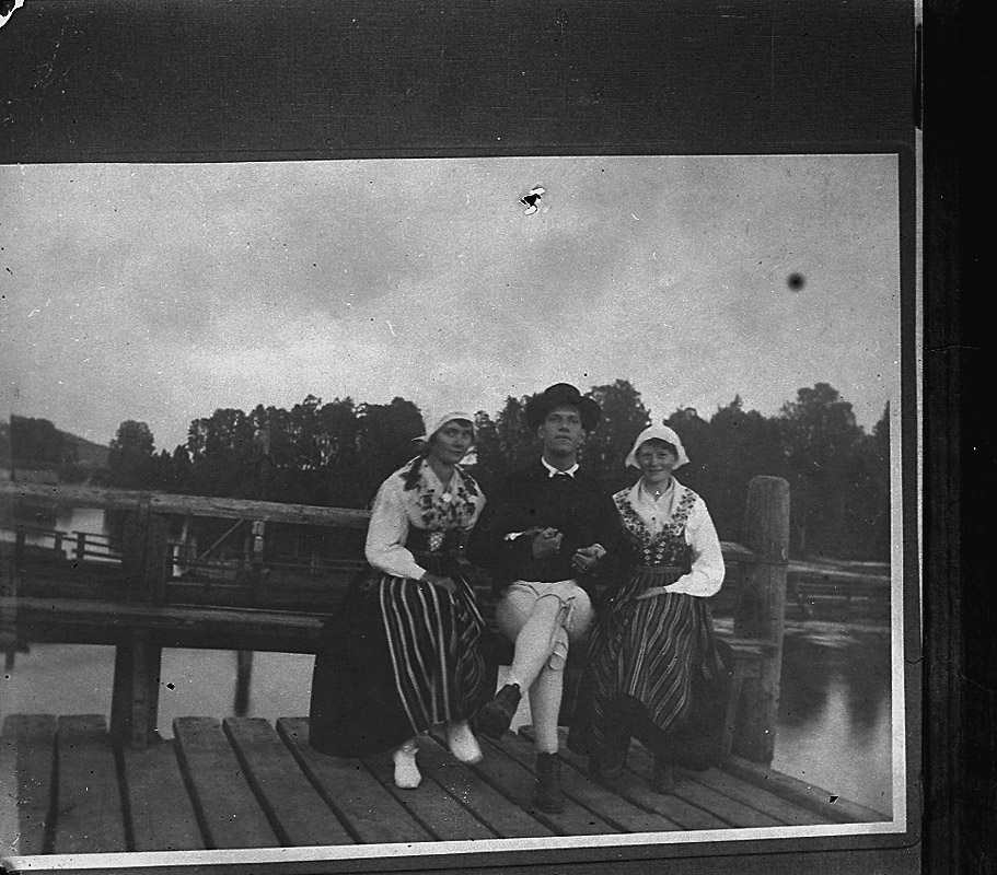 En man och två kvinnor i folkdräkt.