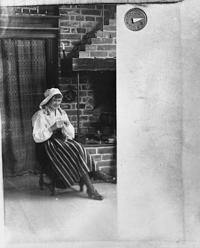 En kvinna i folkdräkt.