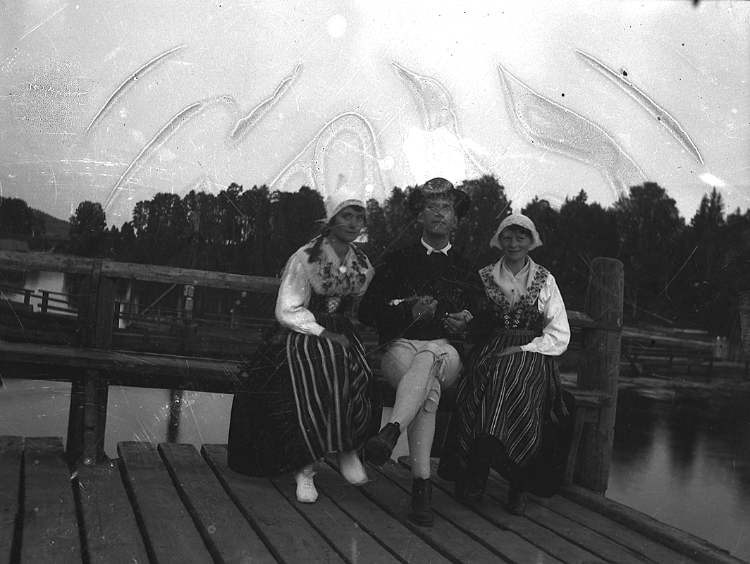 En man och två kvinnor i folkdräkt.