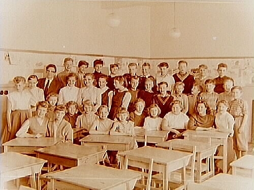 Almby Östra skola, klassrumsinteriör, 36 skolbarn med lärare Bengt Brodin, klass 6Ll, sal 2.