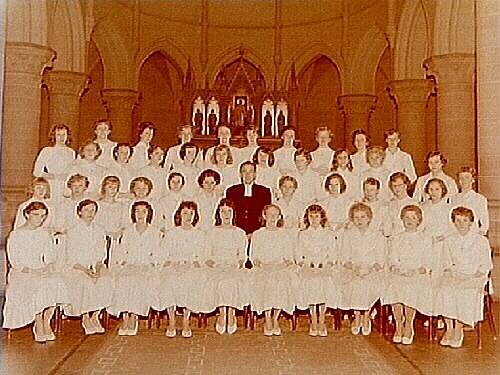 Konfirmander, 42 flickor och prosten Erik Esking.