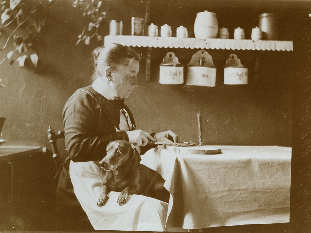 Doktorinnan Maria Norström, född Ekström, och hennes ständigt åtföljande tax Björn.