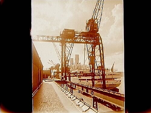 Hamnen, lossning av Amerikaångaren Kungsholm.