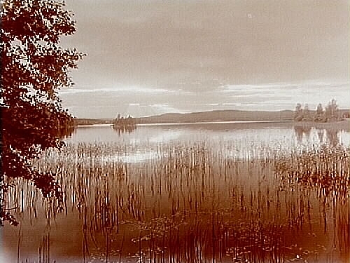 Solnedgång över sjön Saxen vid f.d. Röbergs anhalt.