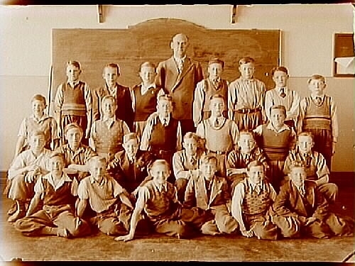 Olaus Petriskolan, klassrumsinteriör, 24 pojkar med magister G. Mollbeck, sal 20.