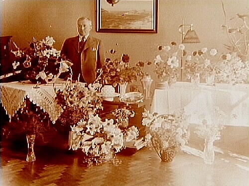 Titel: Rumsinteriör, en man. Köpman V. Magnusson på 60 årsdagen.