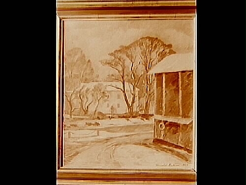 Oljemålning. Motiv: Stadsmotiv, av konstnären Harald Eriksson, 1933.