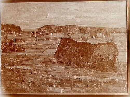 Oljemålning. Motiv: Landskap med höhässjor, av konstnären Harald Eriksson.