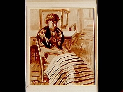 Oljemålning. Motiv: Sittande kvinna, av konstnären Holger Almqvist, 1939.