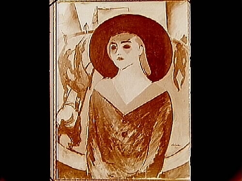 Oljemålning. Motiv: En kvinna, av konstnären Hallman, 1914.