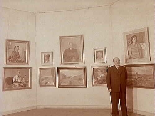 Tavlor utställda av Albin Rapp, 10 oljemålningar, en man.