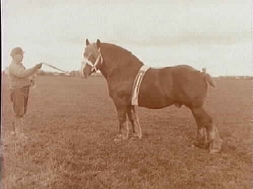 A-C = En man med en ardennerhäst.