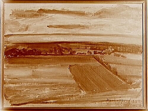 Oljemålning. Motiv: Landskap, av konstnären Martin Åberg, 1932.