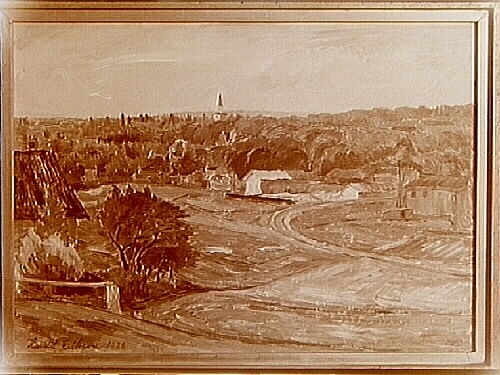 Oljemålning. Motiv: Landskap, av konstnären Harald Eriksson, 1936.