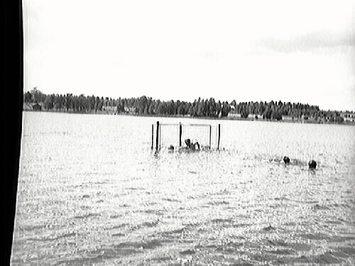 Titel: Här tränar Gösta Klingberg vattenpolo med kompisar.