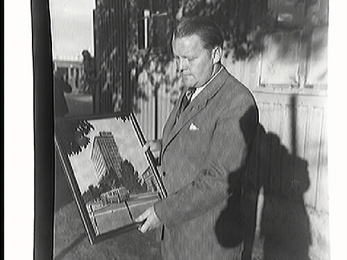 Fotbollsbesök. Bata Fotbollsklubb kom till ÖSK. Här visar lagledare Gösta Pettersson tavlan vi fick i gåva.
