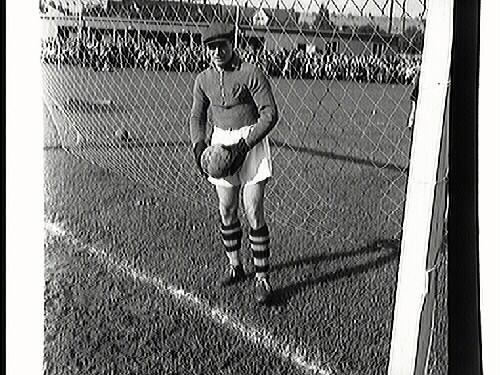 'Gurra' Gustav Sjöberg fotbollsmålvakt i AIK, vid Örnsro Idrottsplats.