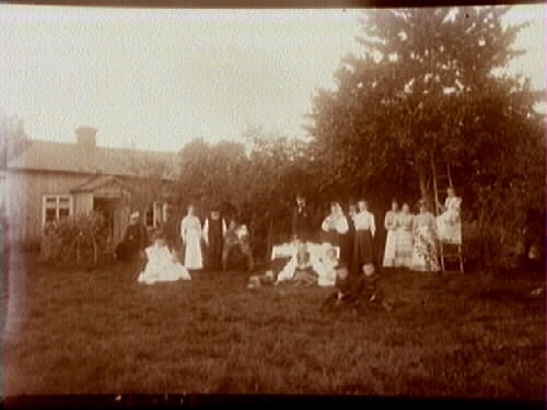 Sittande till vänster i vitt Anna Thermaenius, syster till Fredrik Thermaenius (Mannen i skägg Nilsson i Stocksäter ?)