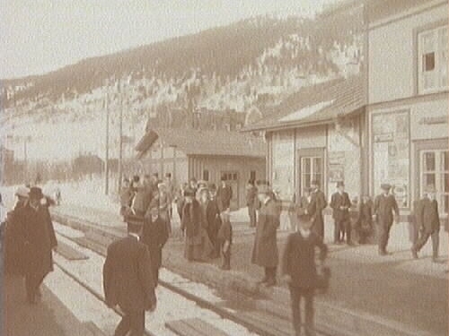 Folk vid järnvägsstation i Åre