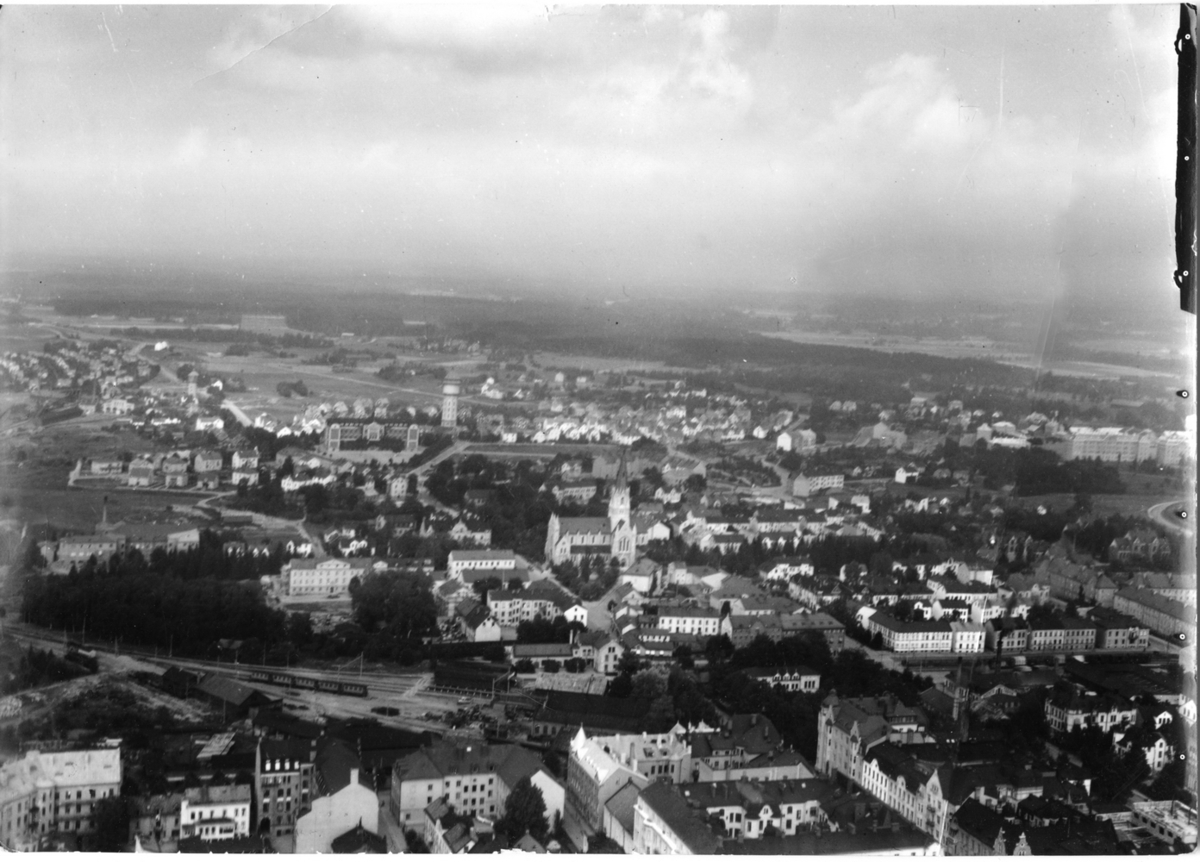 Flygfotografi över Örebros norra delar vid Olaus Petri-kyrkan