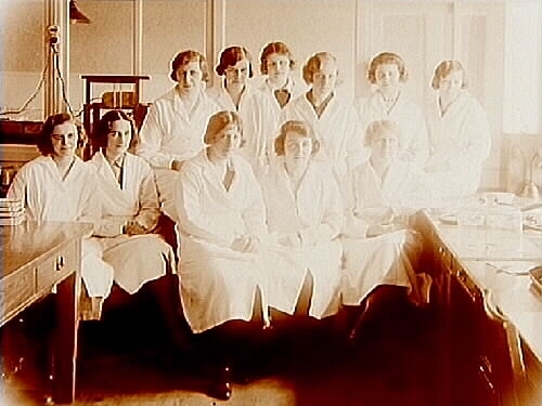 Frökontrollanstalten, interiör, 11 kvinnor ur personalen.