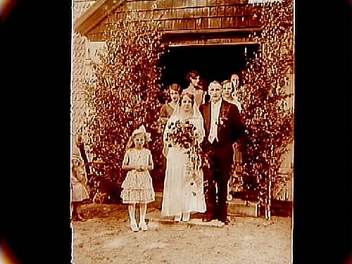 Bröllop, brudpar och bröllopsgäster.