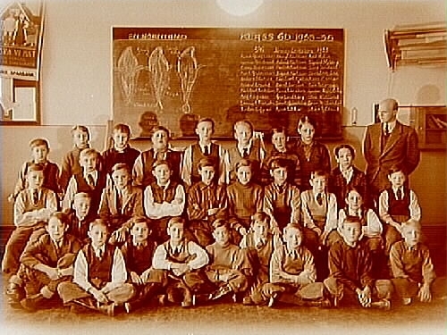 Vasaskolan, klassrumsinteriör, 29 pojkar med Kamrer Eriksson, klass 6D, år 1935-1936.