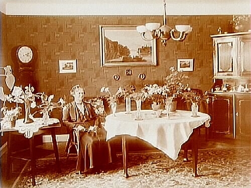 Rumsinteriör, en kvinna.