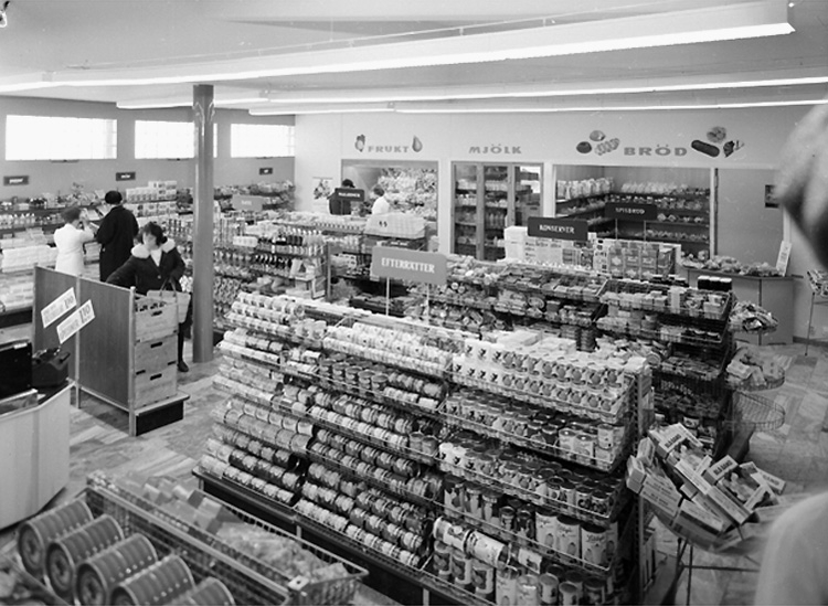 Titel: Konsum Kårstahult, affärsinteriör, kunder och personal.