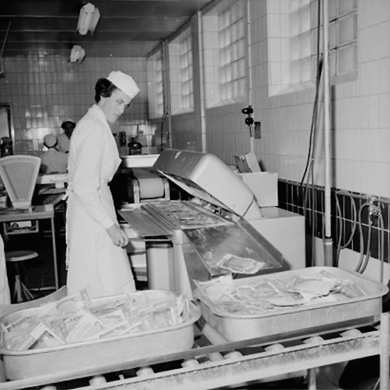 Titel: Konsum, charkuteriavdelningen, interiör, en kvinna.