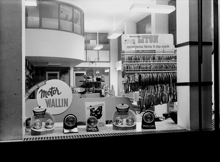Allmotor AB, skyltfönster med Liton fläktremmar.