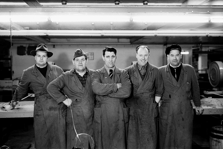 Banan Kompaniet, interiör, fem män.
