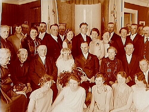 Bröllop, brudpar och bröllopsgäster.