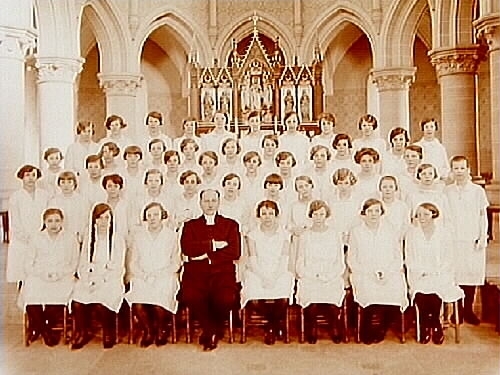 Konfirmander, 47 flickor och pastor Marklund.