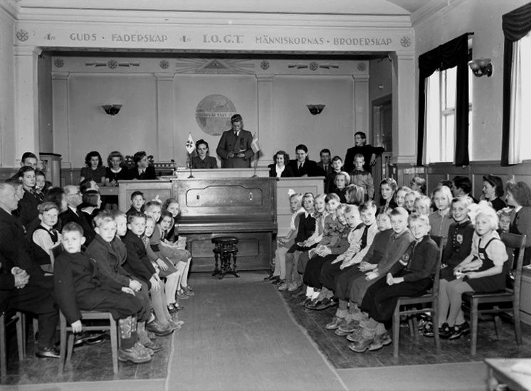 Titel: Interiör, gruppbild. I.O.G.T.s barnloge.