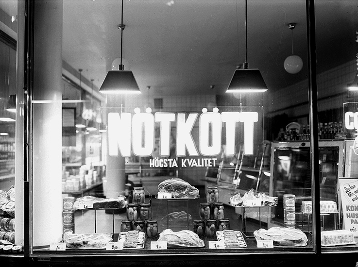 Konsum, skyltfönster, charkuteri.