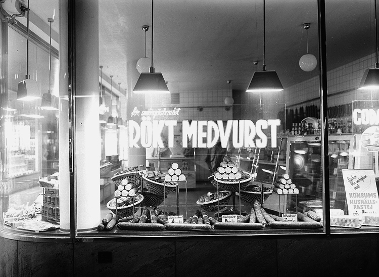 Konsum, skyltfönster, charkuteri.