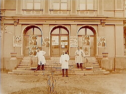 Djurutställning i före detta Excelsiors lokaler, ap- och fågelutställning, apor och fåglar i bur.