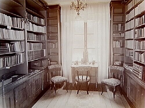 Ölsboda gård, interiör, biblioteket på nedre våningen.