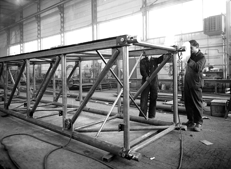 Vretstorpsverken, interiör med arbetare, svetsning.