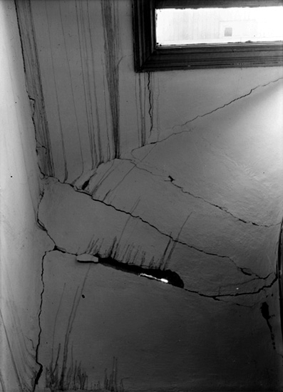 Interiör, spricka i väggen.