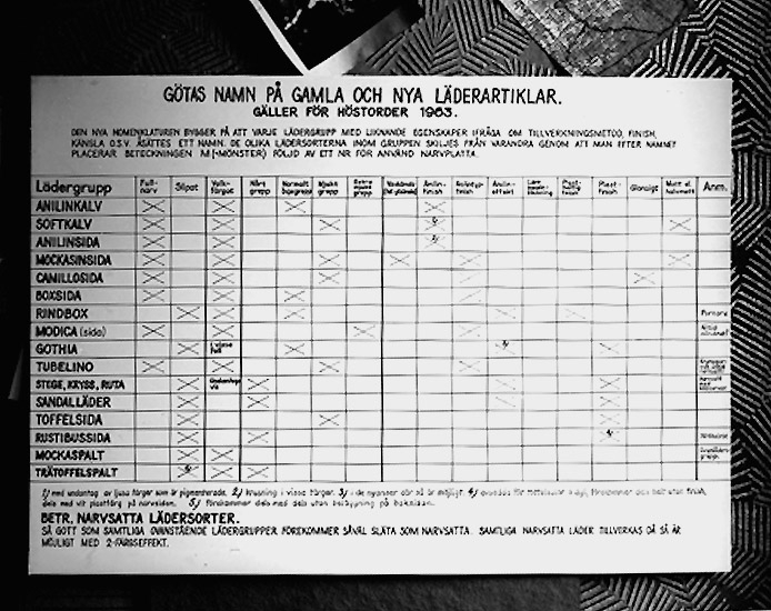 Tabell: Götas namn på gamla och nya läderartiklar, för höstorder 1963.