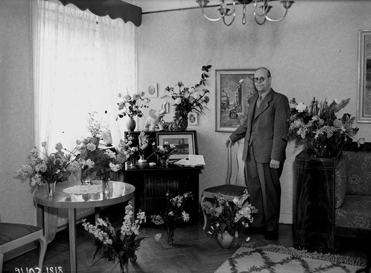 Rumsinteriör, en äldre man, födelsedag.